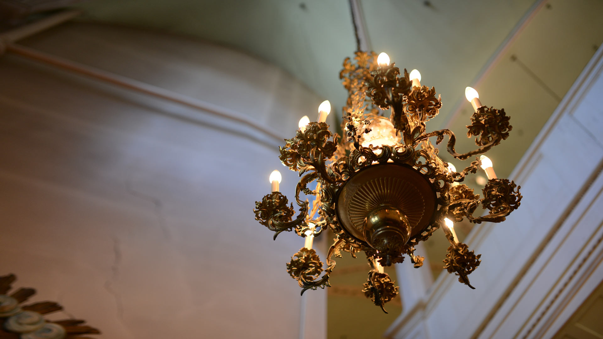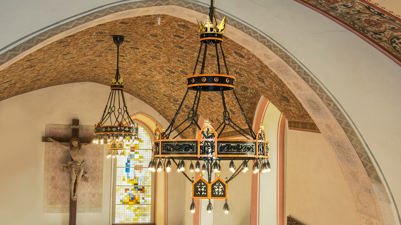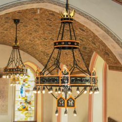 Neuhaus Rekonstruktion von 6 Historismus Kronleuchtern nach von uns gefertigten Modellen pssend zu den restaurierten Historismus Leuchtern.