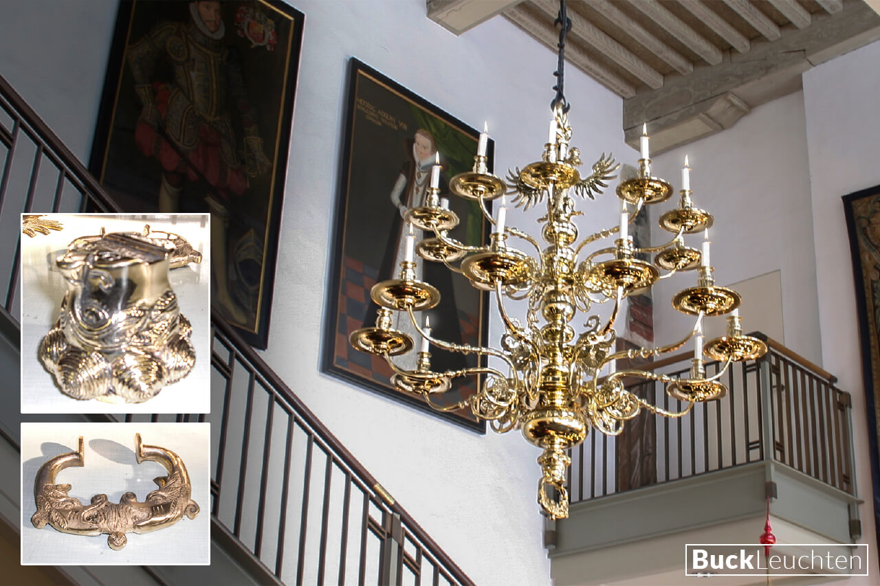 Der große Renaissanceleuchter, (Lübecker Winkelarm-Kronleuchter), in dem wunderbar restaurierten Schloss Reinbek bei Hamburg wurde nach erstellen der notwendigen Zeichnungen und Gussmodelle rekonstruiert. Der ursprüngliche Kronleuchter von 1588 war nach der Schlacht bei den Düppeler Schanzen 1864 von den dänischen Besitzern in den Dom zu Schleswig gebracht worden, wo er noch heute zu sehen ist.